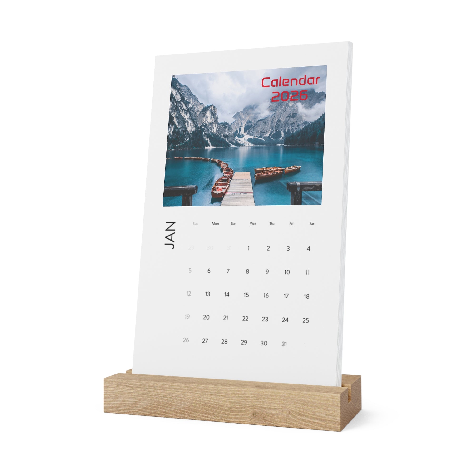 Substitute the single photo frame with this 12-photo vertical desk calendar. When designed with this 12 personalized photos, it brings in a new memory every month. This vertical photo desk calendar is made of 100% paper. It comes in a stylish bright white, matte finish and a beautiful oak wood stand to keep your memories fresh on your desk.