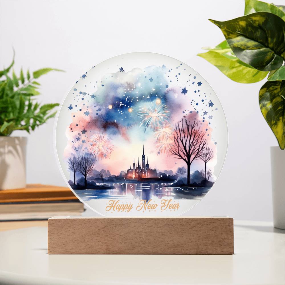 Immerse yourself in the vibrant celebration of the New Year with our exquisite circular acrylic plaque featuring a stunning watercolor portrayal. The design showcases a city adorned with breathtaking fireworks, capturing the essence of joy and festivity as we welcome 2026. Each plaque is meticulously crafted to bring this festive scene to life, making it an ideal gift to commemorate the spirit of a new beginning. Elevate your décor and share the jubilation of the season with this unique and captivating artwork.